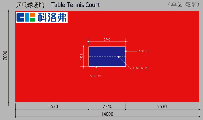 5、乒乓球場地尺寸:主場+副場:長14米×寬7米,面積98平米;主場:長8米×寬4米,面積32平米。