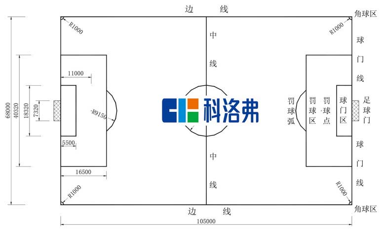 7、足球場場地尺寸:長105米×寬68米,面積7140平米。