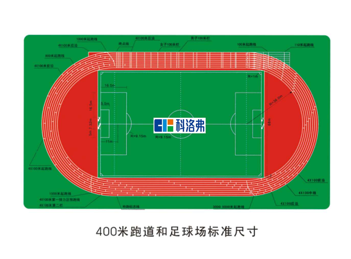 36、足球場人造草坪常用高度為50毫米,規(guī)格沒卷寬4米,人造草坪填料,目前一般有兩種,一種是石英砂,一種是黑色橡膠顆粒填充,高度為草高的70%即35毫米。37、 標準400米田徑場地,橢圓形跑道的彎道半徑應為36.5米(國際田聯(lián)標準),兩個半圓中心點距離為84.39米,這樣內(nèi)圓長為398.12米,由內(nèi)沿向外30厘米,測量場地長,應為400米。